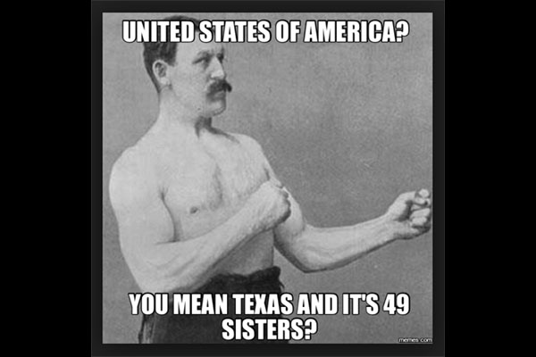 Who doesn’t love a good humorous meme? I know I sure do. Just for fun, here are a few memes about Texas I collected a while back. If you want to see more, check out this post on Wide Open Country. And if you want to see EVEN MOAR then check out this post. Fun fact: I made that Blue Bell meme myself.