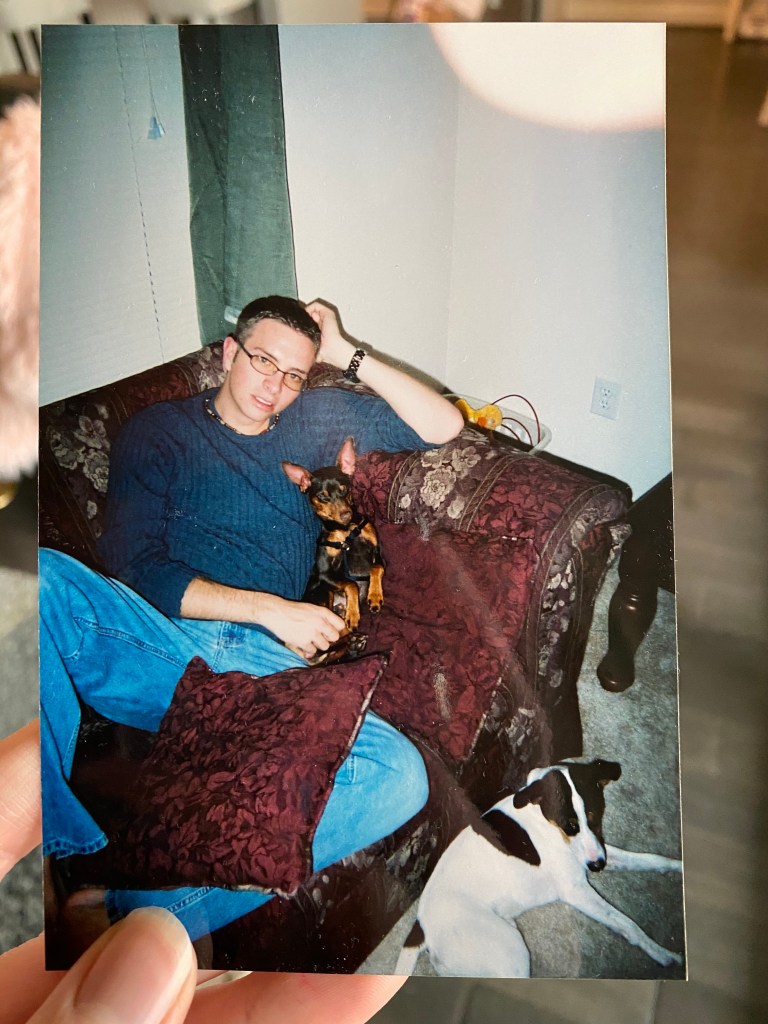 Eventually Hunter was really more my dog than Eric’s because, being the one who stayed home, I was the one who saw to all his needs and took him to the vet. I remember snuggling with him on the couch once before I had kids, just marveling at how two beings of different species could be so very bonded.