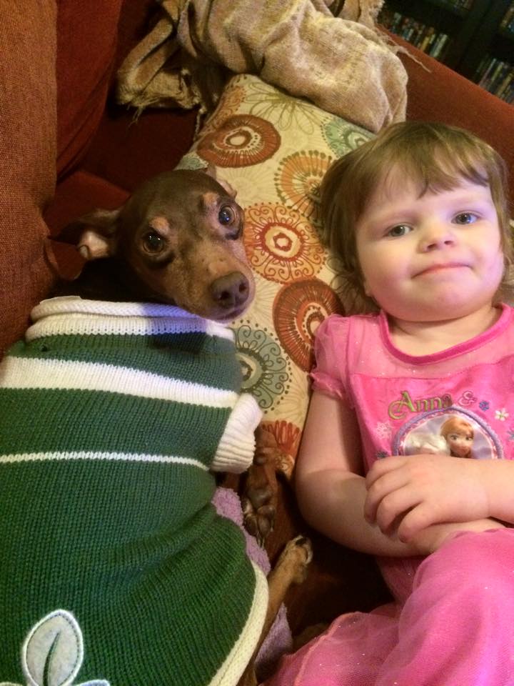 When we first brought Bella home from the hospital, he sniffed her, growled and bit her hand. We let him know that that was not okay though, so from then on when we brought new babies home he cautiously sniffed them and then backed off. Once he acknowledged the baby as a part of the family, he would stand guard over them as they slept, making sure no one would hurt the baby. When we used to play wrestle with each other he would get really mad and start barking at us to stop. He could never tell the difference between happy squeals and screams of pain so whenever we had giggling kids we inevitably also had an upset, loudly barking dog.