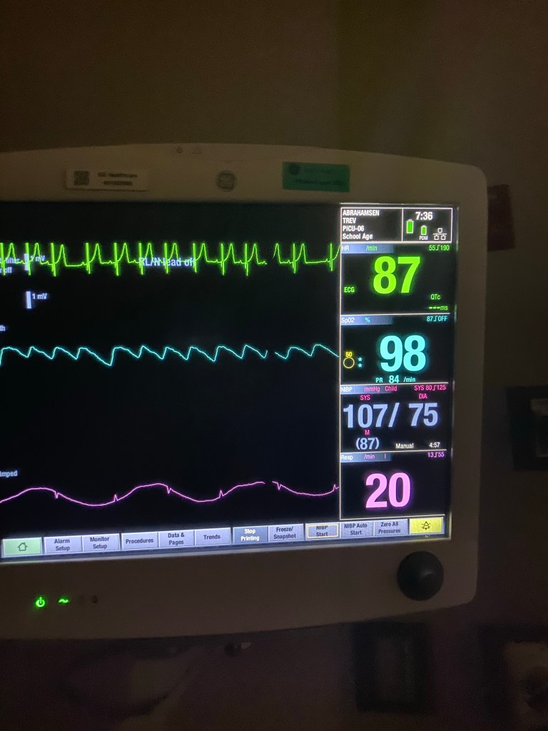 Sometimes the alarms on the monitors would be going off and Trevor was still happily playing, seeming perfectly healthy.