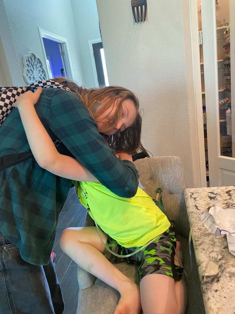 Trevor hadn’t seen his sisters since Thursday because he wasn’t awake when they left for school on Friday morning, and he was already in the PICU by the time they got out of school on Friday. Unfortunately, minors aren’t allowed as visitors in the PICU so they had to sit in the waiting room and use FaceTime to talk to their brother. So when they finally saw each other again they hugged for a really long time and it definitely made me cry.