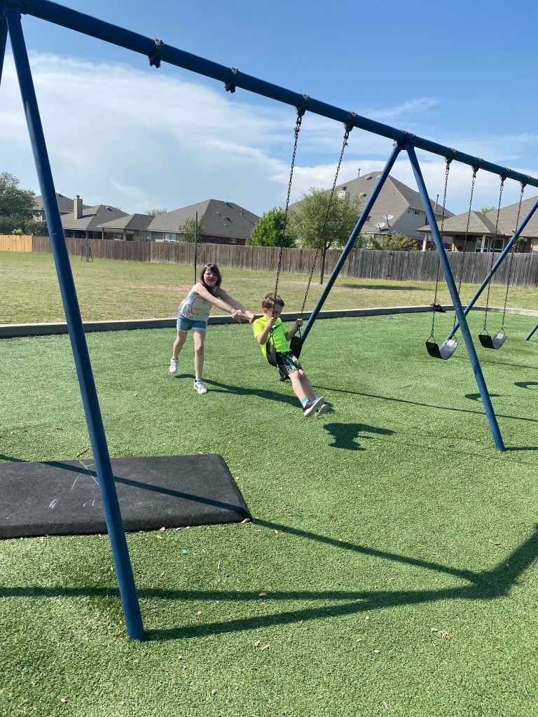 Afterwards we went to go get Vivienne’s sweater which she had left at the playground, and Trevor wanted to play. He had been cooped up for so long but I also didn’t want to strain him so I set a 10 minute timer and let them play. It turned into a mini Yes Day because after that they had popsicles at home, and then asked if they could have a water balloon fight. Yes. All the things. Our baby is home! Everyone had fun and didn’t get mad at each other which is a common issue with water balloon fights. Then they all had a bath because they were soaking wet and covered in grass.