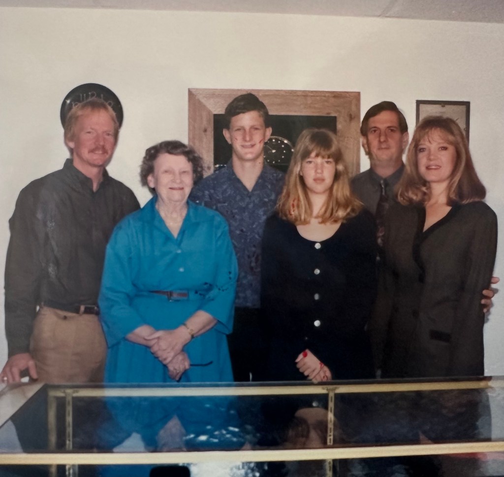 Emma Pearl Allbritton was the only grandparent I ever really knew. I called her “Grandma” and my cousin called her “Mema”. My Grandpa, James Allbritton, passed away in 1990 when I was seven, and my dad’s parents were both gone before I was born. My grandma died early in the morning on Tuesday, April 2, 2024 at the age of 96. She had plenty of time to plan for this eventuality, and I had always envisioned being there at her funeral, maybe I would speak, but for certain, I would be there. However, I will be on a mission trip in Mexico starting tomorrow, so since I am going to miss the momentous occasion of celebrating the life of this great lady, I wanted to share my memories here. These are my memories, I can’t attest to their accuracy, but this is how I remember things. The human memory is notoriously fallible, mine especially, so some memories may be rose-colored, but this is how I remember my grandma. This post is in no way complete, since even the best writer couldn’t condense 96 years of life into anything so limited as a blog post, and it will also be missing some pictures; I have some of my grandma’s photo albums, but many of the pictures of me and my siblings growing up are at my mom’s house in Houston, so I will share what I have, and I apologize to anyone who gets left out.